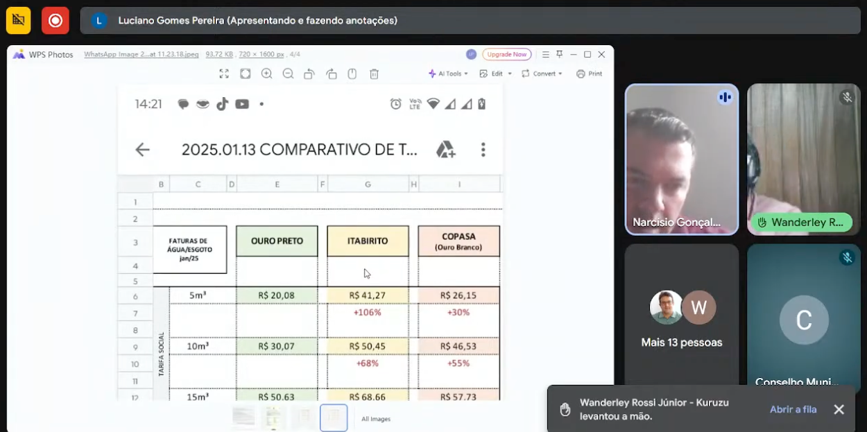 A terceira reunião extraordinária de 2025 do Conselho Municipal de Saneamento (Comusa) reuniu prefeitura, conselheiros, ARISB-MG (agência reguladora) e Saneouro para tratar de dois fios entrelaçados do cotidiano ouro-pretano: a revisão do Plano Municipal de Saneamento Básico (PMSB) e a consulta pública do reajuste tarifário da água. No centro da mesa, uma pergunta que voltou várias vezes: como garantir participação social de verdade, com metas claras e informação acessível, quando os prazos correm e a conta chega todo mês?